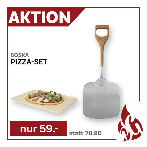 Exklusiv bei uns, dass BOSKA Pizza Set. Erhalten Sie einen Pizzastein, sowie eine Pizzaschaufel. Den Pizzastein können Sie auf dem Grill, wie auch im Backofen anwenden.Im Set enthalten: